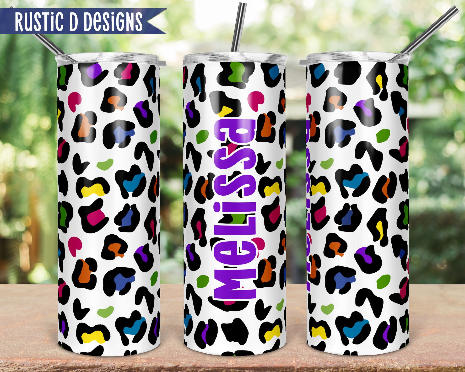 Multicolor Leopard Personalized 20oz Stainless Steel Skinny Tumbler