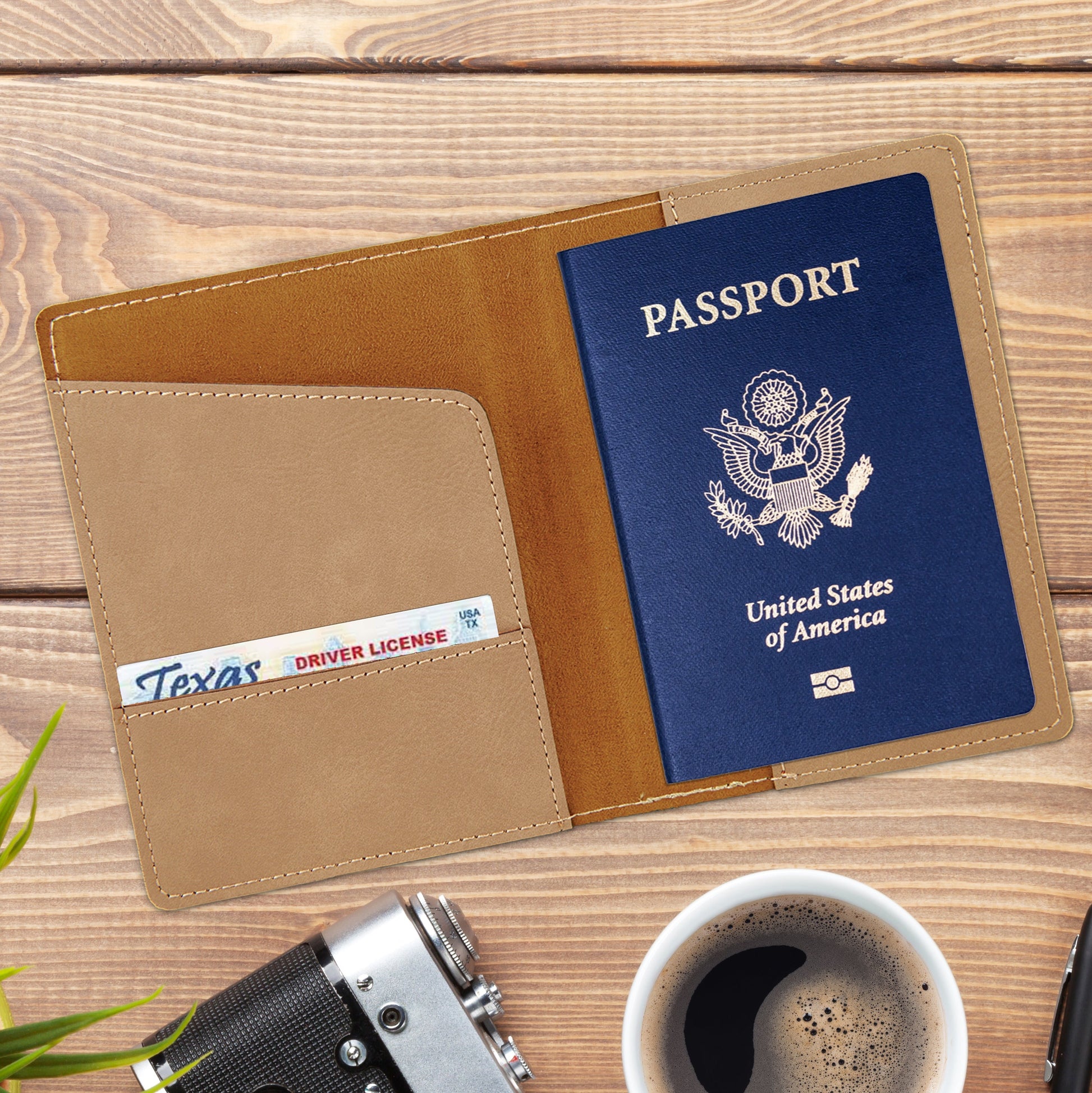 Travel in style with a custom engraved leatherette passport holder!