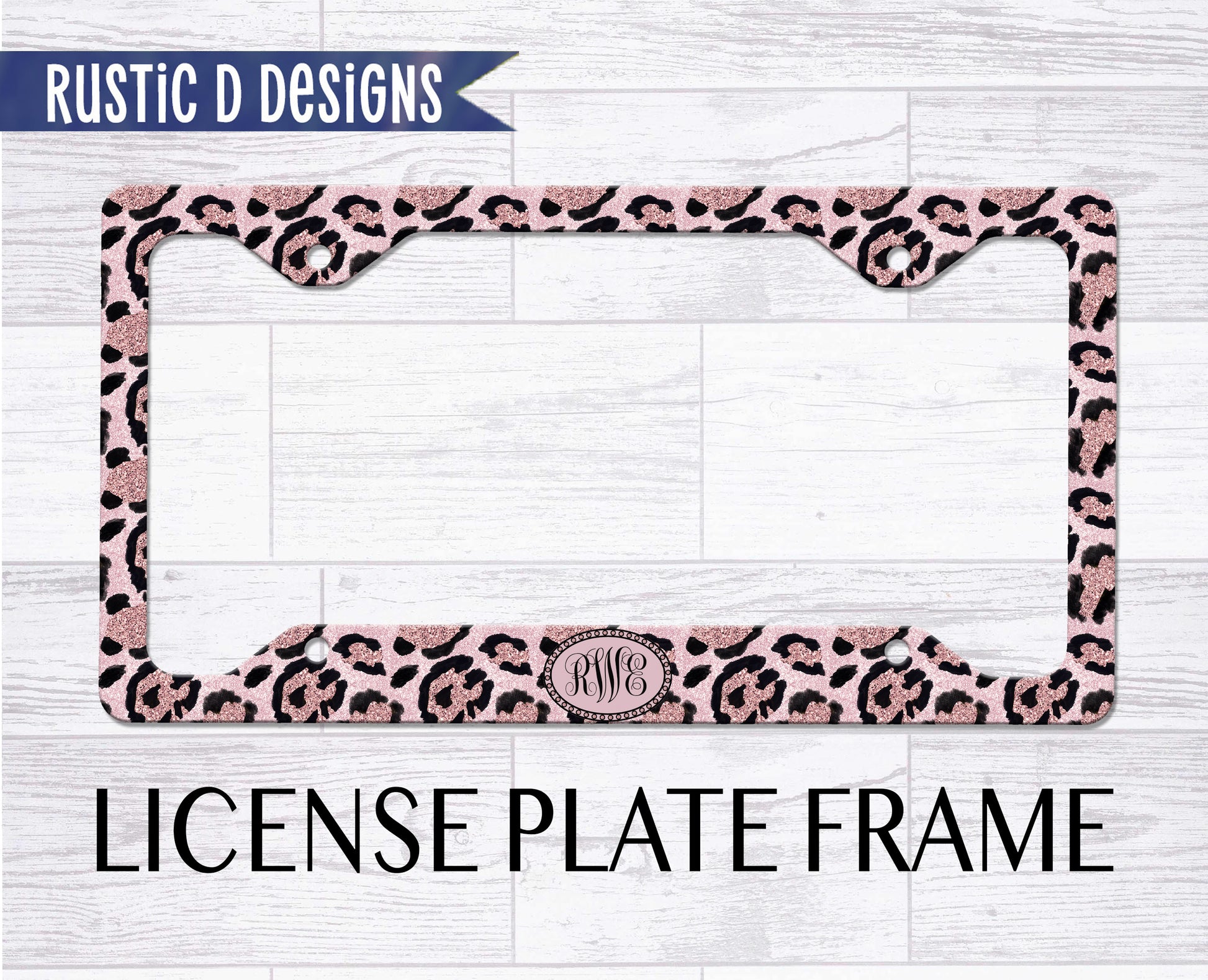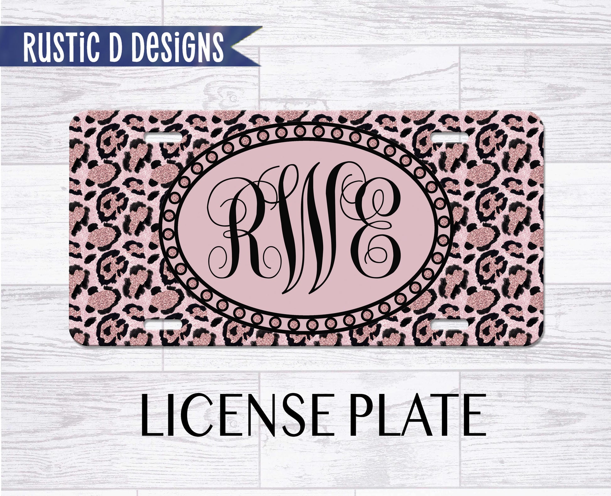 Pink Leopard Glitter Effect Personalized License Plate Auto Set