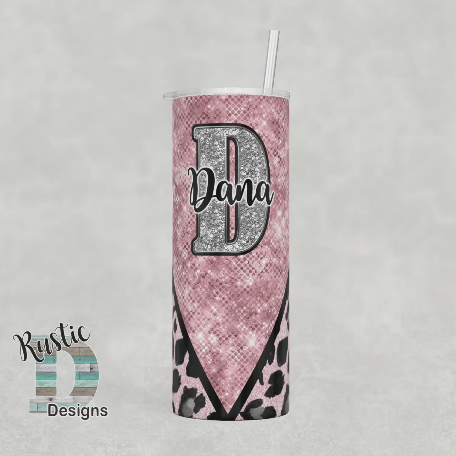 Pink Leopard Glitter Effect Personalized 20oz Stainless Steel Skinny Tumbler