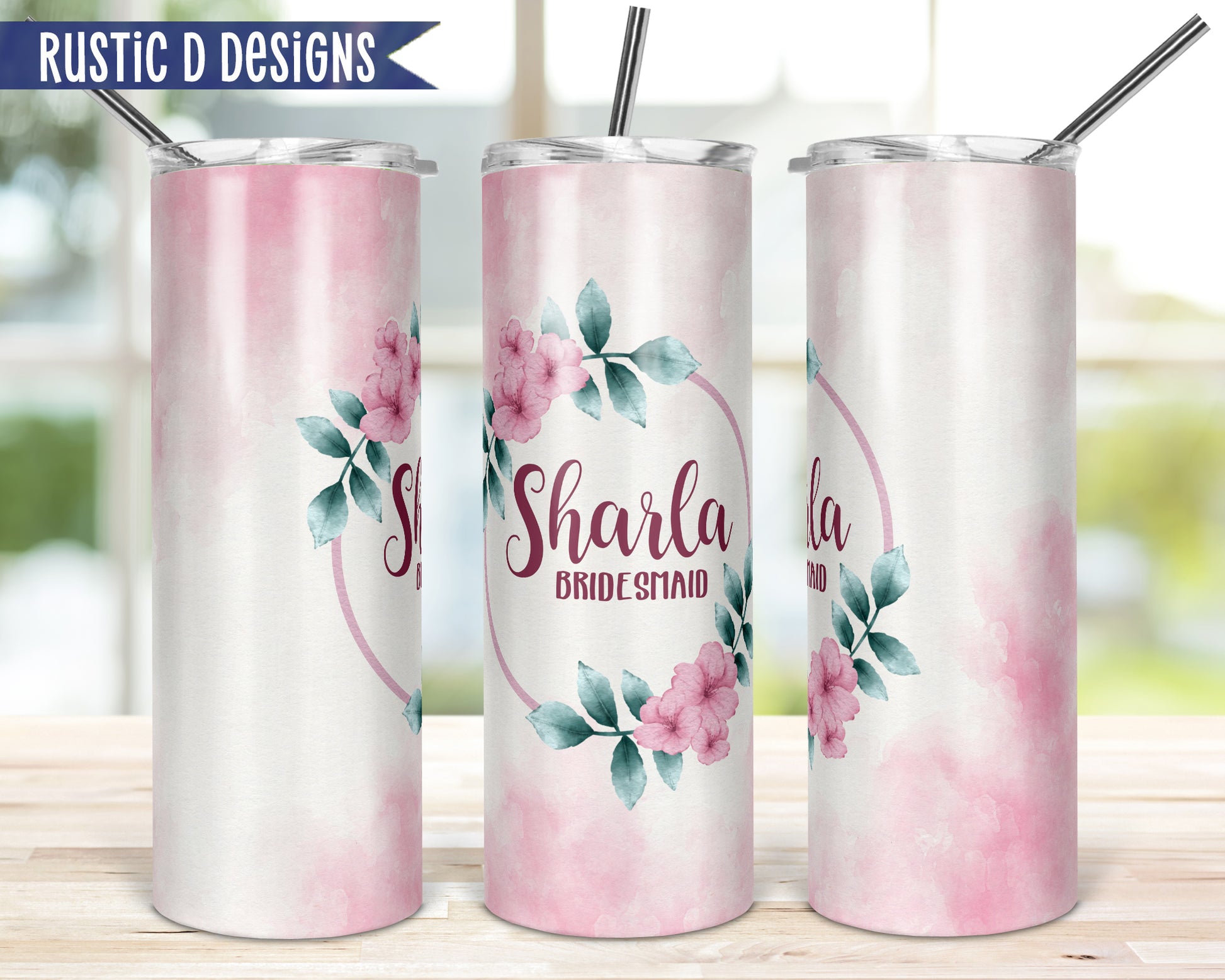 Pink Watercolor Bridal Party Personalized 20oz Stainless Steel Skinny Tumbler