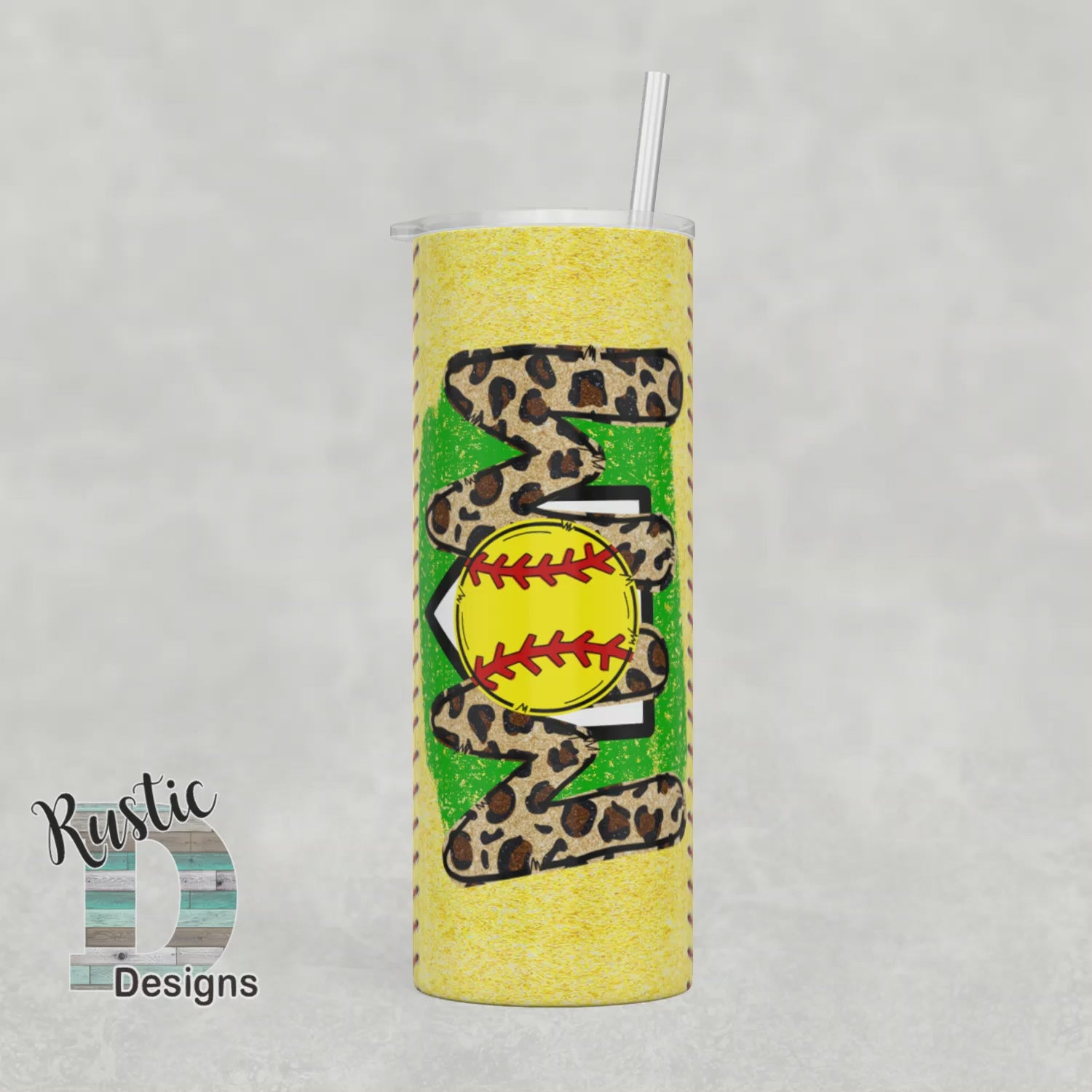 Softball Mom Glitter Leopard 20oz Stainless Steel Skinny Tumbler